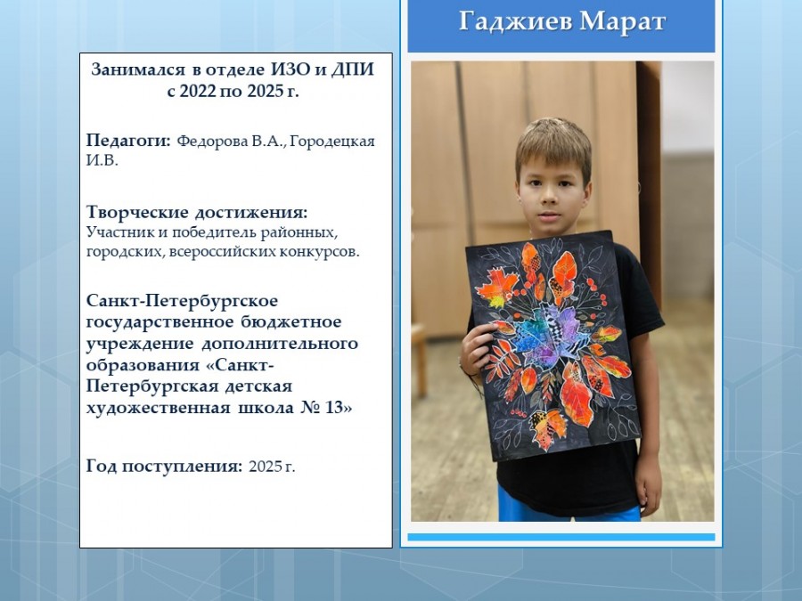 Выпускникиотдела изобразительногоискусства и декоративно-прикладного творчества