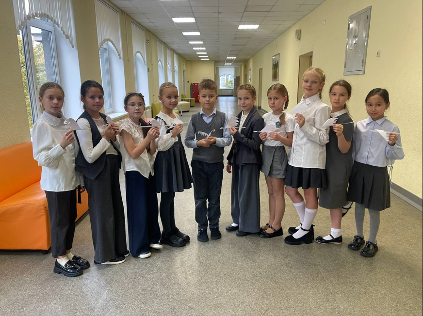 В образовательных учреждениях района проходили тематические открытые уроки и мастер-классы по изготовлению бумажных журавликов – символов чистоты, мира и вечной памяти. Эти хрупкие белые птицы, созданные руками детей, стали знаком благодарности героям, чья судьба навсегда вплетена в историю страны.