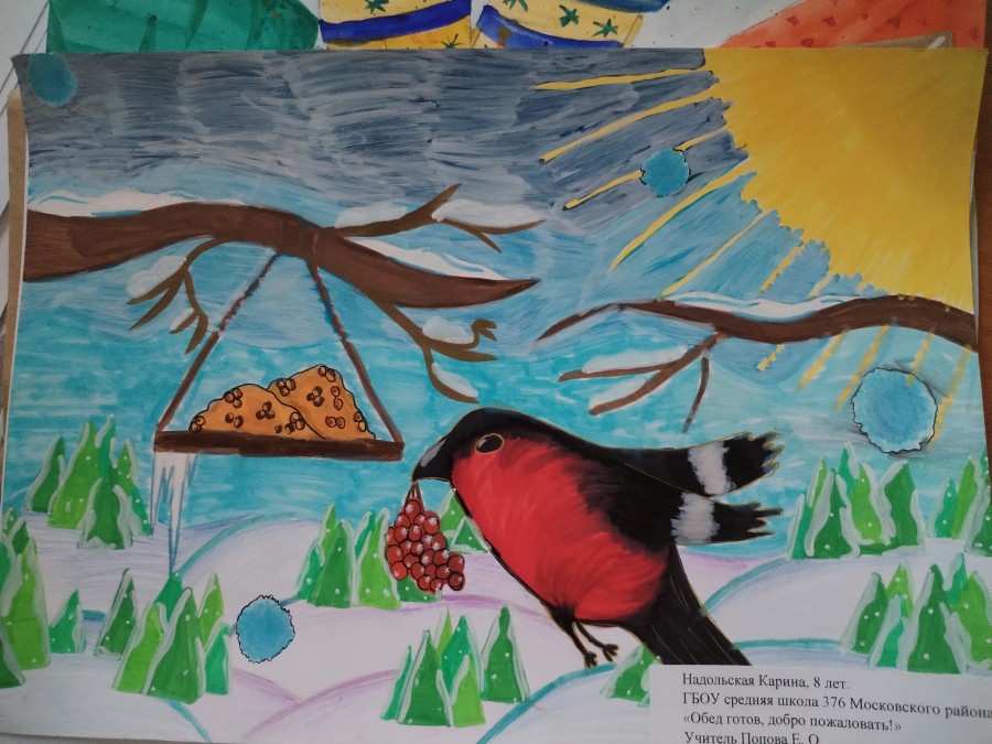 С 1 по 22 декабря в Московском районе проводился районный открытый конкурс творческих работ «Покормите птиц зимой!». Мероприятие было направлено на оказание посильной помощи птицам, зимующим в нашей местности, в период морозов и недостатка корма, а также на формирование у детей экологического сознания и бережного отношения к природе.