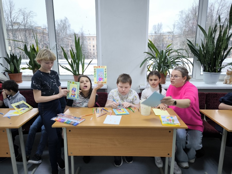 25 ноября 2025 г. во Дворце детского (юношеского) творчества в рамках выставки-конкурса «Осенняя палитра мира» педагог дополнительного образования отдела ИЗО и ДПИ Вера Андреевна Федорова провела творческий мастер-класс по росписи ставен для учеников специальной школы № 613.