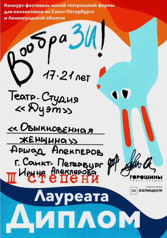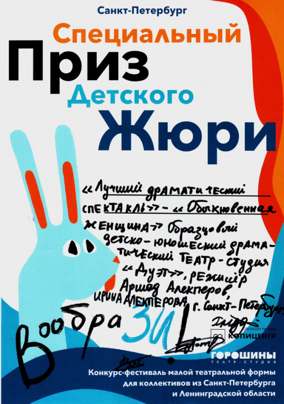 - Диплом Лауреата III степени за спектакль «Обыкновенная женщина».