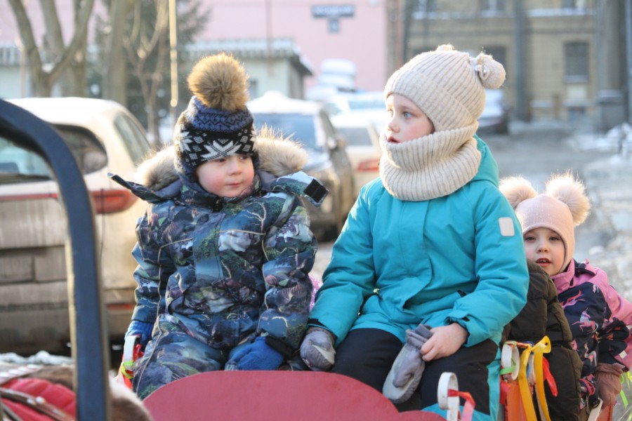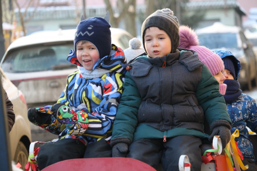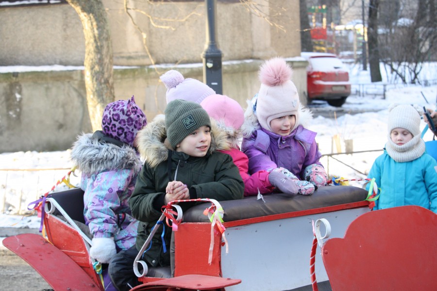 После концерта праздник шагнул на улицу: под открытым небом развернулись настоящие масленичные гулянья. Дети и взрослые водили хоровод вокруг чучела Масленицы, провожая зиму и встречая весну. Атмосферу всеобщей радости дополнило катание на лошади в экипаже – замечательный подарок от МО «Московская Застава», который вызвал настоящий восторг у ребят.