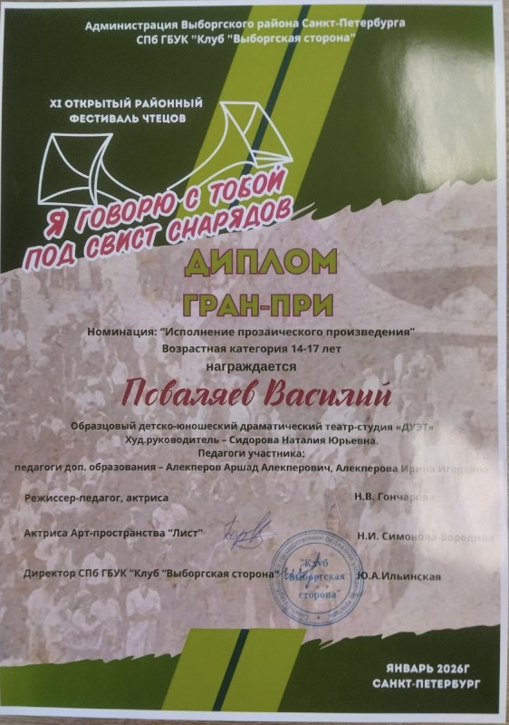 Гран-при чтецкого фестиваля у театра-студии «Дуэт»
