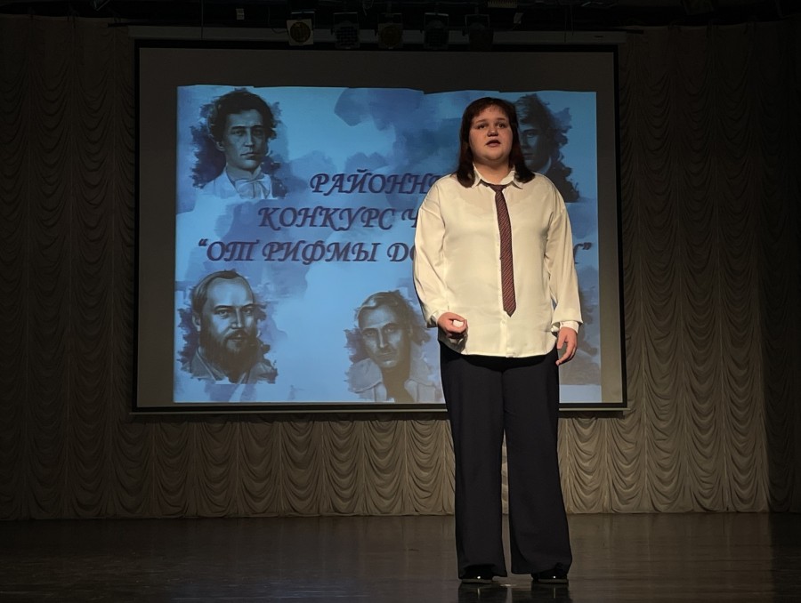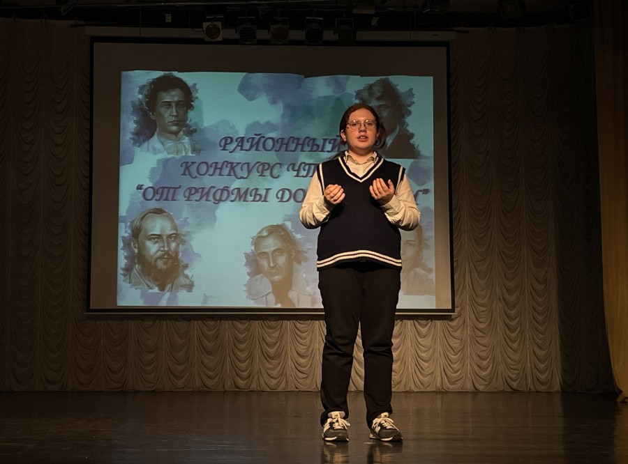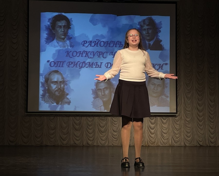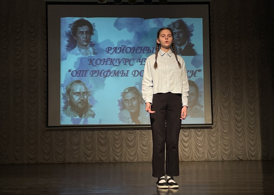 23 апреля 2026 года во Дворце детского (юношеского) творчества завершился районный конкурс чтецов «От рифмы до строчки». Мероприятие было приурочено к юбилейным датам со дня рождения выдающихся русских поэтов: Сергея Есенина, Агнии Барто, Александра Блока, Константина Симонова и Афанасия Фета. Конкурс стал площадкой, где школьники и дошкольники смогли прикоснуться к классике и по-новому услышать знакомые строки.