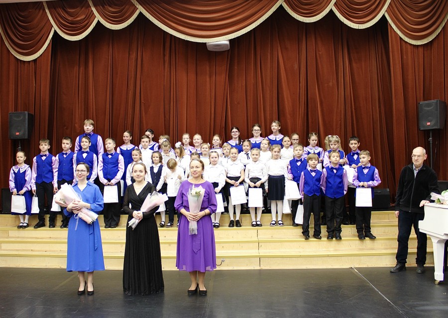 Особое внимание зрителей было приковано к главным героям события – детям первого года обучения. Для них этот концерт стал первой серьёзной сценой и важным шагом в творческую биографии. Юные певчие исполнили подборку детских песен, продемонстрировали первые навыки музыкальной грамоты и уверенность, которая рождается только от искреннего желания петь.