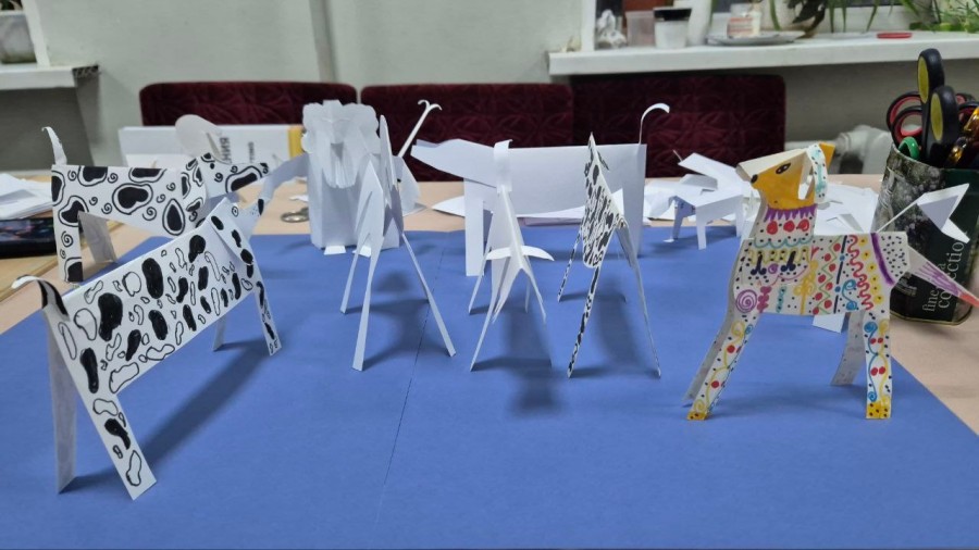 Педагоги-художники подготовили для детей и взрослых разнообразные творческие задания. Участники мастер-классов попробовали себя в росписи деревянных лошадок, создании объёмных фигурок из бумаги, изготовлении ёлочек из фетра, росписи керамических звёзд, а также в создании открытки-снеговичка и новогодней ёлки из фетра и бисера.