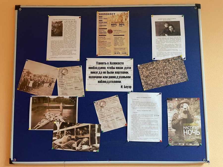 В холлах и рекреациях школ были оформлены тематические стенды с историческими фактами, фотографиями и свидетельствами. Эти информационные островки памяти напоминали всем входящим о шести миллионах погибших, о важности сохранения достоинства каждого человека и о недопустимости ксенофобии, антисемитизма и любых форм ненависти.