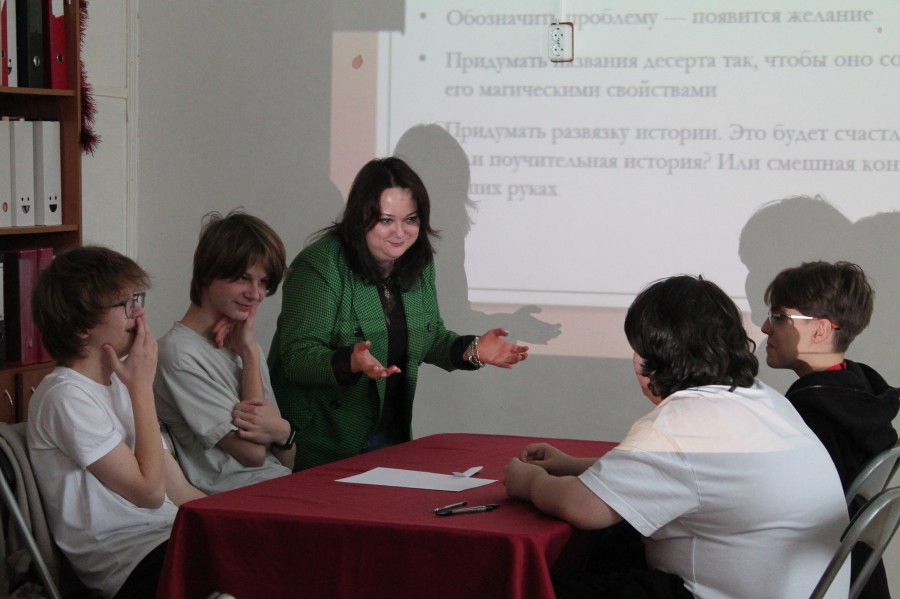Практическая часть встречи стала настоящим творческим испытанием. Ученики разных школ объединились в команды и получили задание придумать необычную историю об исполнении желаний. Рождались неожиданные сюжеты, звучали яркие образы и смелые фантазии.