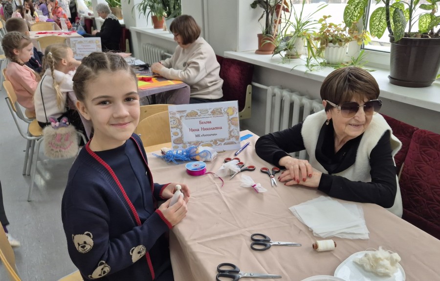 Педагоги подготовили для гостей разнообразную творческую программу. Участники создавали масленичные куклы и народные маски, мастерили мартеницы и декоративные аксессуары, осваивали оригами, работали с глиной. По желанию можно было дополнить праздничный образ аквагримом.