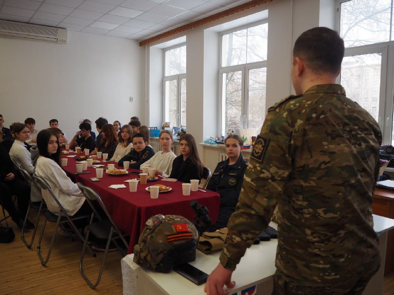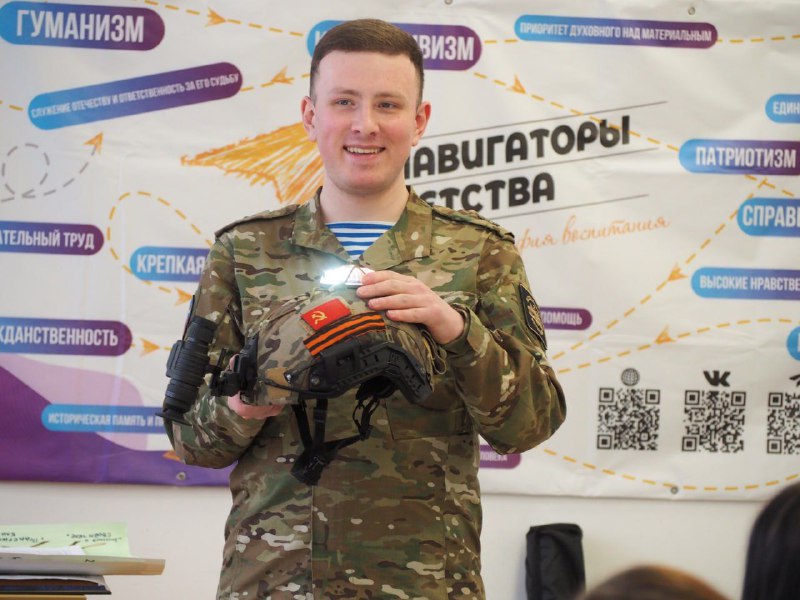 Почетным гостем встречи стал Иванов Кирилл Алексеевич, заместитель руководителя ассоциации ветеранов СВО «Защитники Родины» по Московскому району Санкт-Петербурга. В формате открытого диалога Кирилл Алексеевич поделился с ребятами историей своей службы, рассказал о боевых буднях, товарищах и значении воинского братства. Особый интерес у школьников вызвала демонстрация личных трофеев гостя, тактической аптечки и средств индивидуальной брони – каждый экспонат имел свою историю, связанную с реальными событиями.